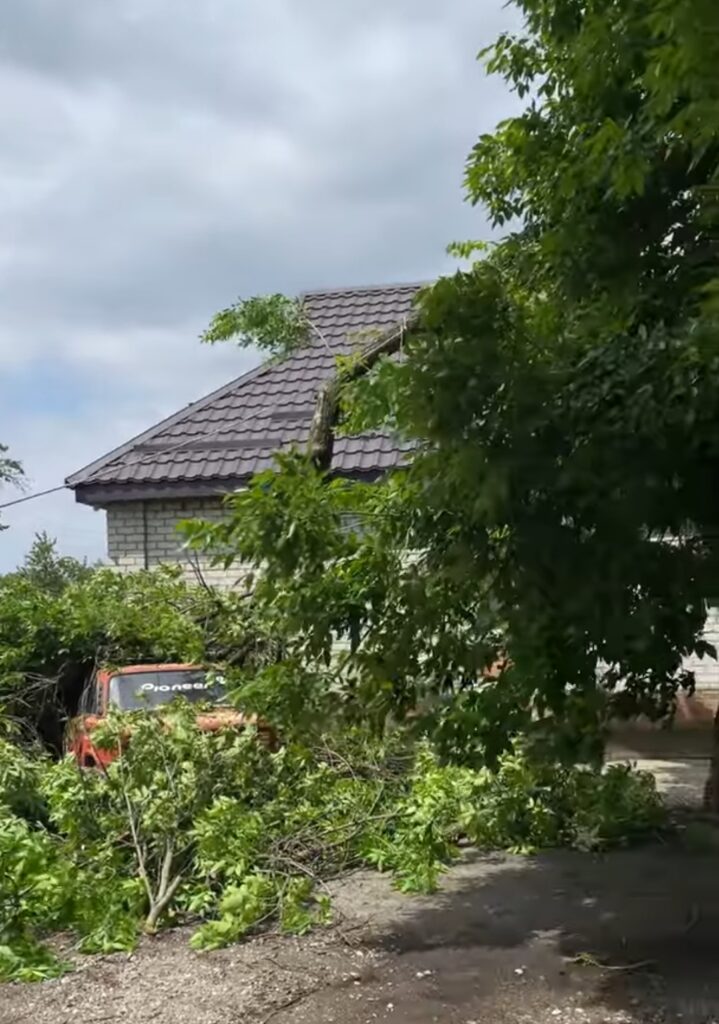 Частина великої гілки впала на автомобіль, інша — зависла над дахом. Існувала реальна загроза пошкодження покрівлі та вікна, що могло б призвести до значних збитків.