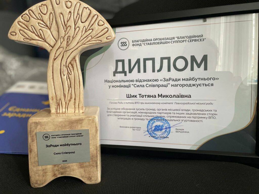 Голова Ради з питань внутрішньо переміщених осіб при виконавчому комітеті Павлоградської міської ради Тетяна Шик отримала національну відзнаку «ЗаРади майбутнього» у номінації «Сила співпраці».