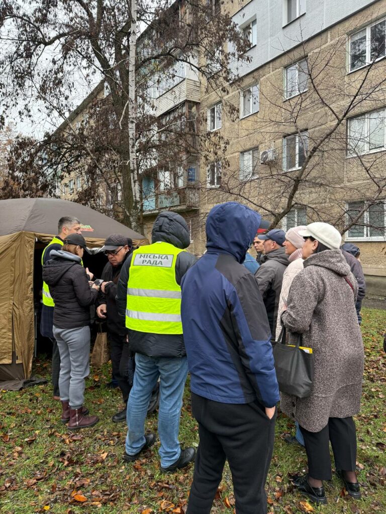 За адресою вул. Будівельна, 10 розгорнуто намет міської ради, Центру надання адміністративних послуг та поліції, в яких постраждалі можуть залишити звернення про допомогу та отримати консультації.