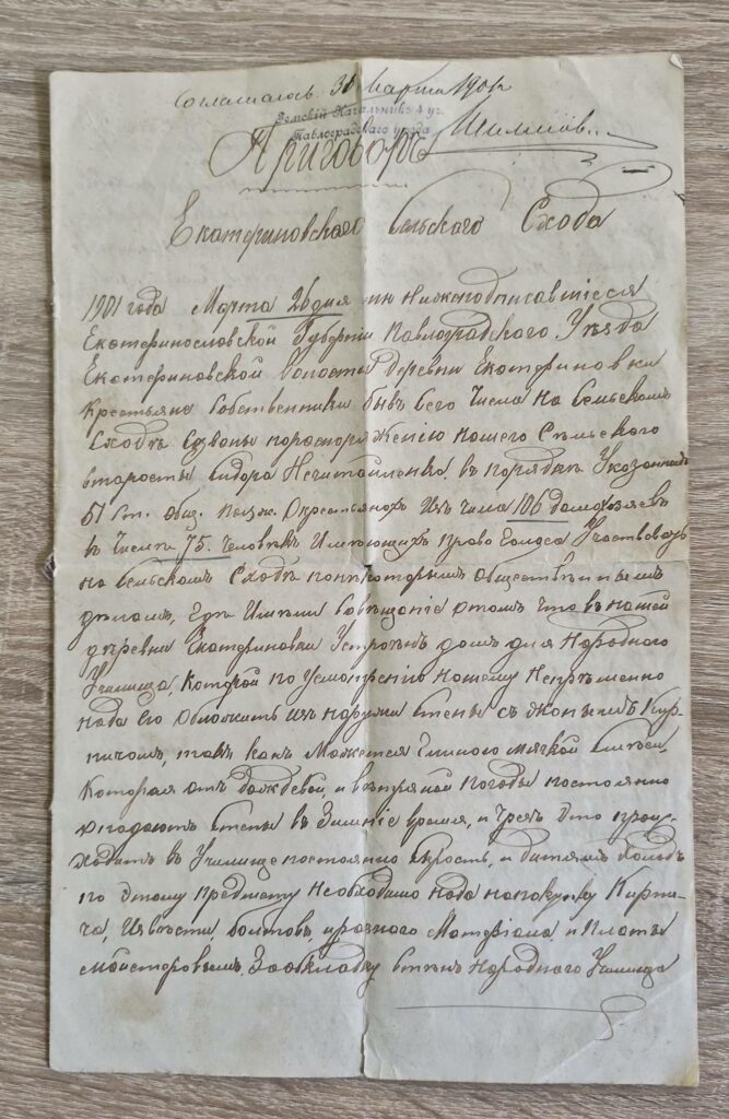 Приговор 1901 року — оригінальний документ, що відкриває сторінки правової та адміністративної історії нашого регіону.