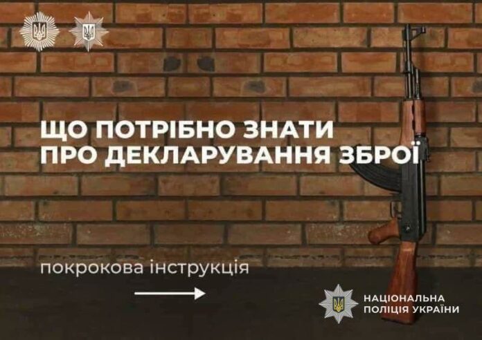 Правоохоронці нагадують: для декларування зброї необхідно подати  письмову заяву; копії паспорта та реєстраційного номера облікової картки платника податків (ІПН); витяг про місце проживання або реєстрації; фотокартку розміром 3,5 × 4,5 см.