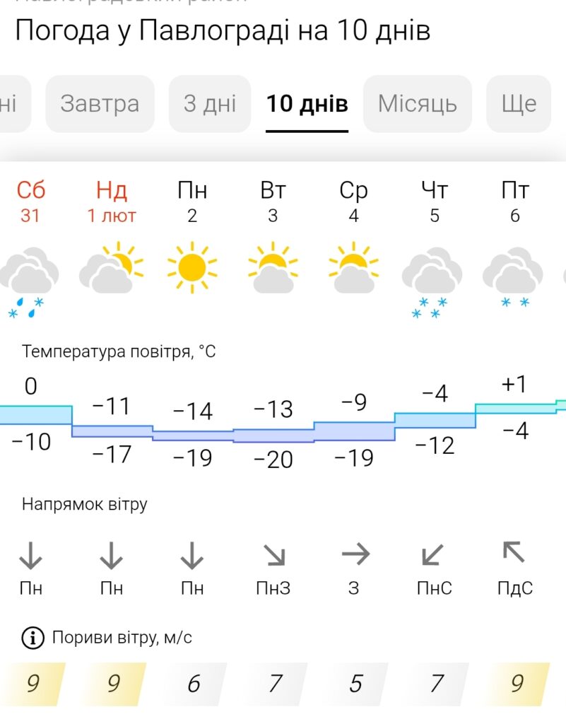 Згідно даних Meteofor, похолодання очікується вже у суботу, 31 січня: температура повітря почне поступово знижуватися, вночі очікується -10 градусів. У неділю, 1 лютого, вдень прогнозують -11 градусів, вночі буде -17 градусів.