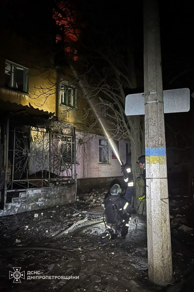 Як повідомили у ДСНС України, у результаті удару зайнявся триповерховий житловий будинок — пошкоджено дах і перекриття. В іншому багатоквартирному будинку вибиті вікна, горів гараж.