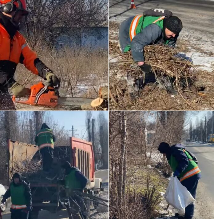 Як повідомили у КП «Затишне місто», у межах виконання робіт здійснюється спилювання небажаної порослі та аварійних гілок, видалення легких гілок секаторами, збір і завантаження гілля до спецтехніки, а також прибирання випадкового сміття на прилеглих територіях.