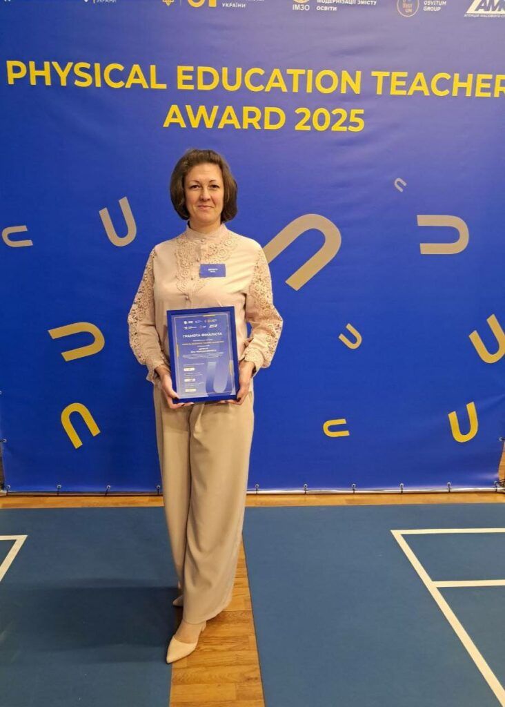 За результатами конкурсного відбору педагогиня увійшла до тридцятки кращих учителів фізичної культури України та отримала грамоту фіналіста конкурсу.