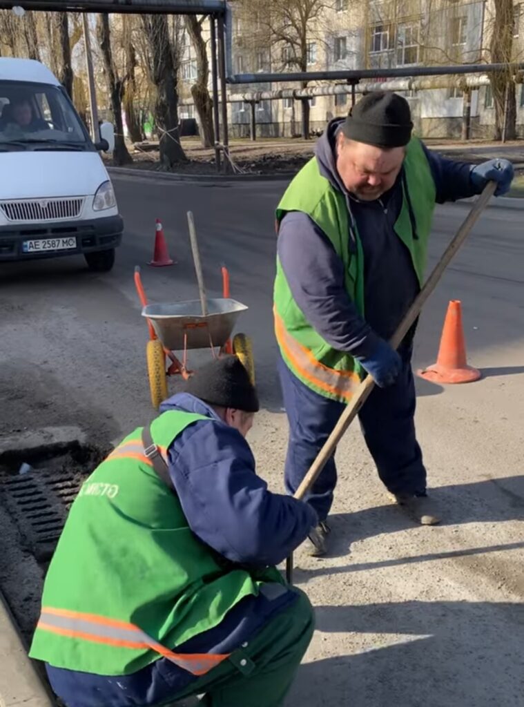 Працівники КП «Затишне місто» обстежують проблемні ділянки: розбирають пошкоджені елементи, визначають обсяг і складність робіт, огороджують аварійні місця для забезпечення безпеки.