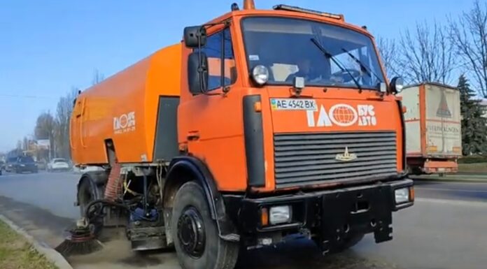 У Павлограді після ручного очищення міських доріг від накопиченого сміття, на вулиці вийшла підмітально-прибиральна машина «Глобус».