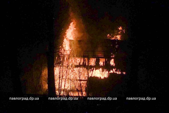 Около 20:00 на территории одного из зданий, предположительно, Павлоградского завода технологического обслуживания начался пожар. Огонь быстро охватил сооружение и поднялся до уровня 4-го этажа.