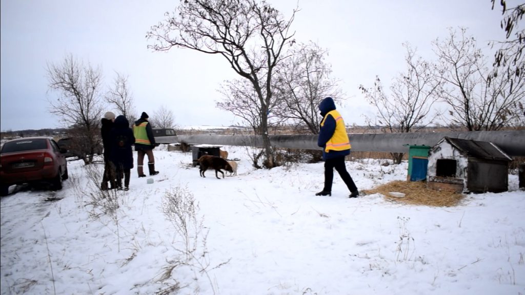 Волонтерка вместе с КП «Уютный город» установила будки для бездомных собак. Собак бросили у трассы люди. Они остались жить около дороги от городской свалки до шахтоуправления Павлоградское, очевидно ожидая, что кто-нибудь из хозяев вернутся к ним.