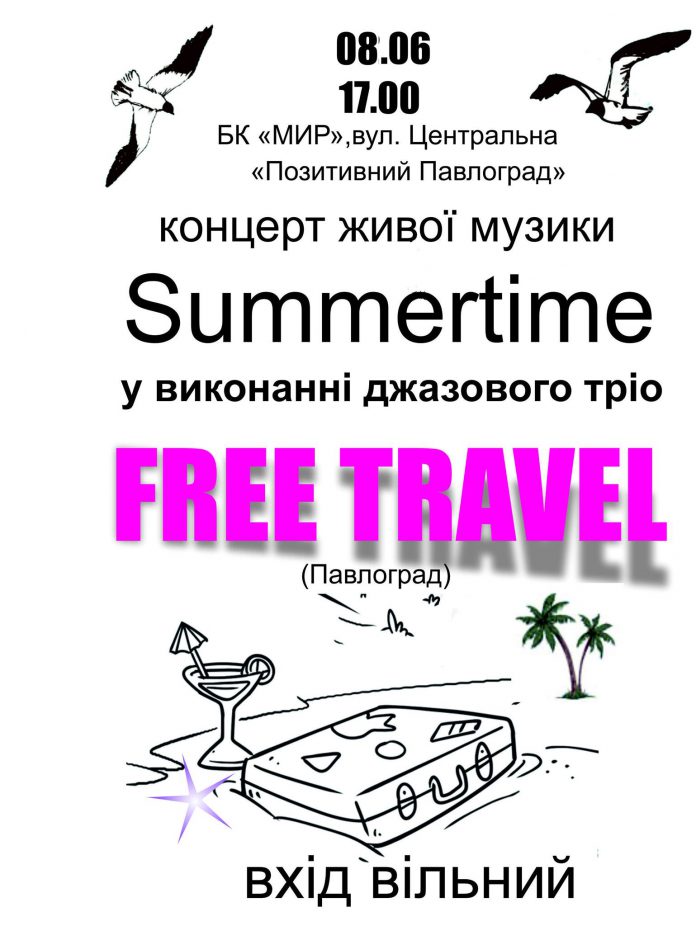 Концерт живой музыки «Summertime» в исполнении джазового трио «Free travel»